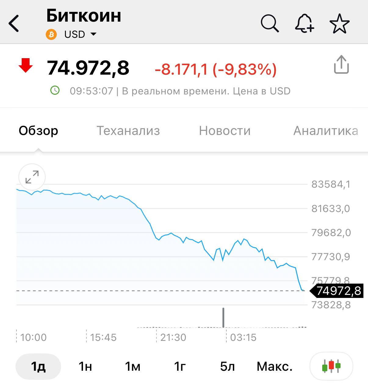 Bitcoin-in qiyməti noyabrın 7-dən bəri ilk dəfə 75 min dollardan aşağı düşüb.