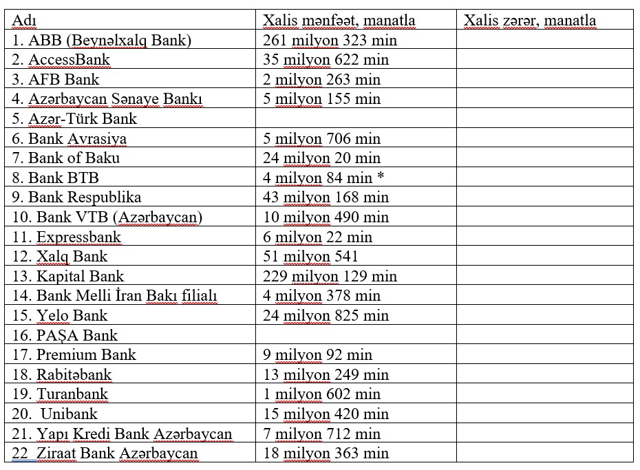 21 bank mənfəət açıqladı - SİYAHI