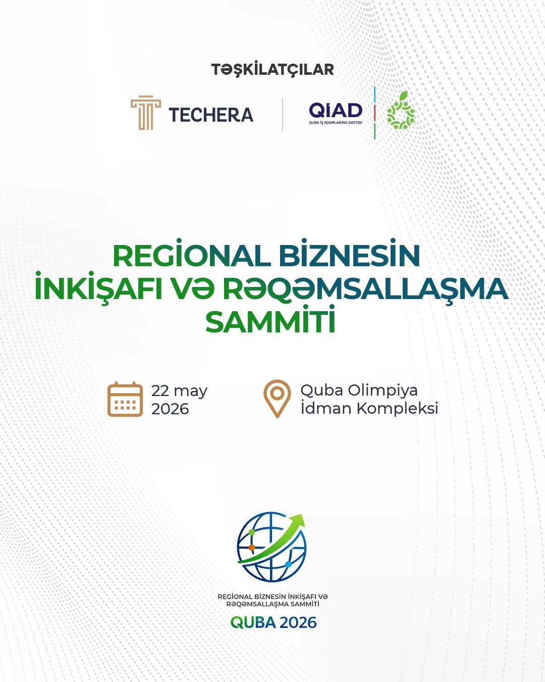 Azərbaycanın regionlarının iqtisadi inkişafına həsr edilmiş ən geniş miqyaslı platformalardan biri olan "Regional Biznesin İnkişafı və Rəqəmsallaşma Sammiti — QUBA 2026" 22 may 2026-cı il tarixində Quba Olimpiya İdman Kompleksində qapılarını açacaq.