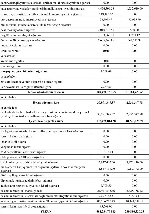 2016-cı ilin eyni dövründə 448,5 milyon manat sığorta haqları toplanmış, 218 milyon manat ödəniş həyata keçirilmişdi.