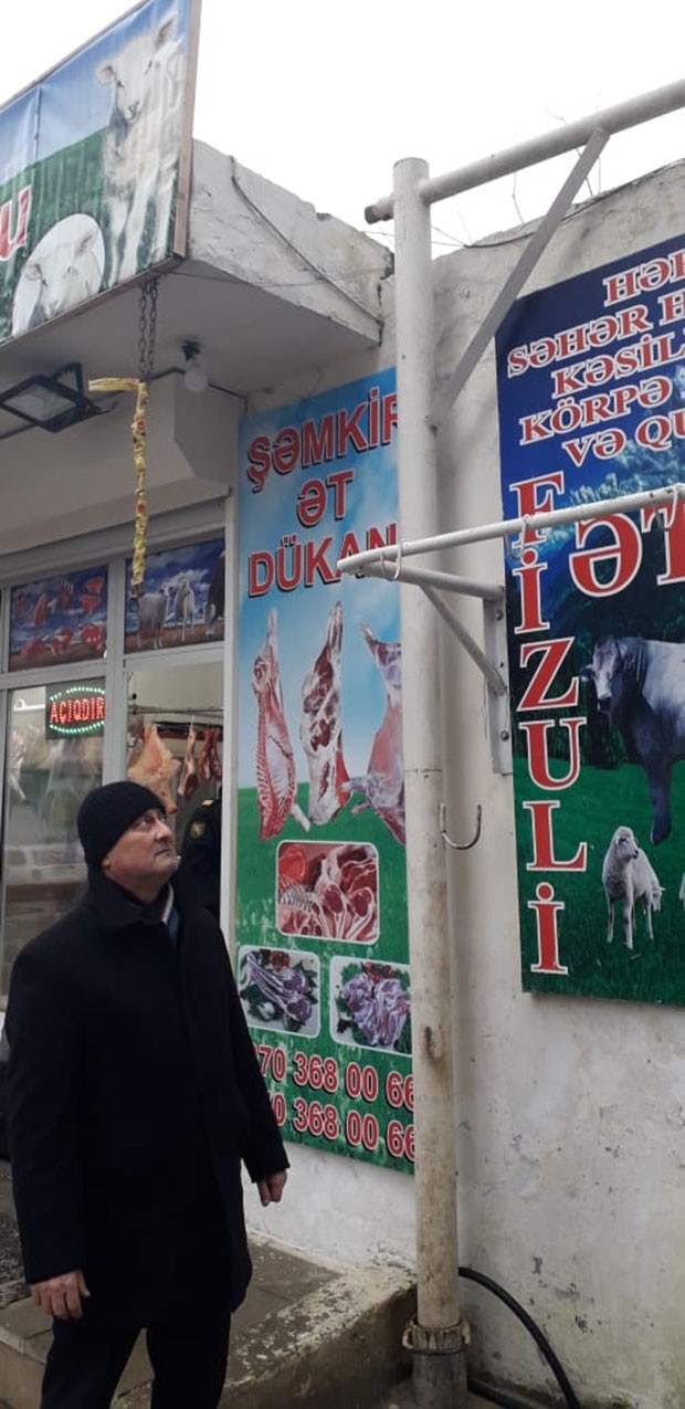Müəyyən edilib ki, bu ünvanda fəaliyyət göstərən ət satışı mağazalarında antisanitar vəziyyət və baytarlıq ekspertizası aparılmadan ətlərin satışı həyata keçirilir. Bununla əlaqədar olaraq sahibkarlıq subyektlərinə məxsus qeyri-qanuni fəaliyyət göstərən ət satışı mağazalarında qanunsuz heyvan kəsimində istifadə olunan dəmir konustruksiyalı qurğular yerli icra orqanının əməkdaşları tərəfindən ləğv edilib.