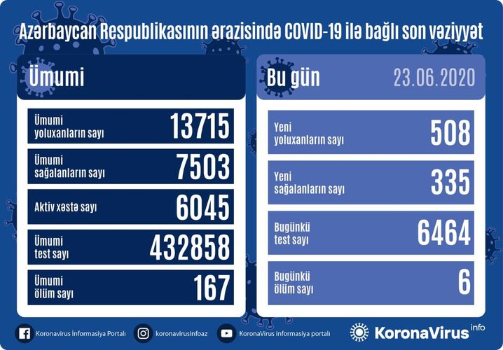 Xatırladaq ki, 22 iyunda 478 yoluxma faktı qeydə alındığı açıqlanmışdı.