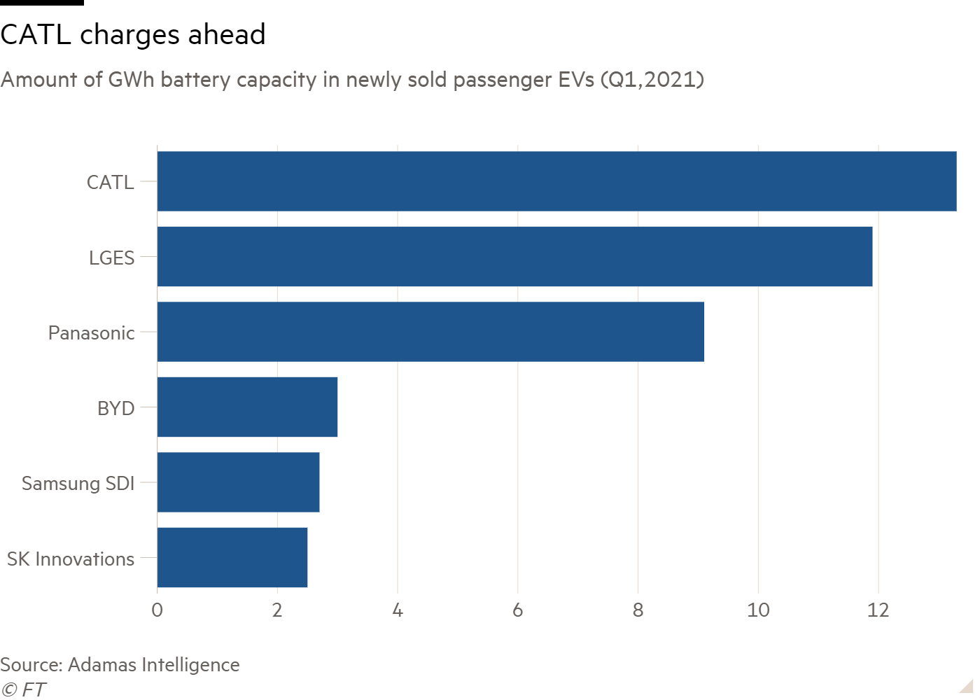 Son 10 ildə qlobal liderə çevrilən CATL-ın bazar dəyəri ötən il 160% artaraq, 170 milyard dollara yaxınlaşıb. Bununla da şirkət Tesla və Toyota çıxılmaqla, qalan bütün avtomobil istehsalçılarından daha dəyərlidir. Batareya istehsalında əsas rəqiblər olan Panasonic və LG Chem-in birgə dəyəri belə CATL-a çata bilmir.