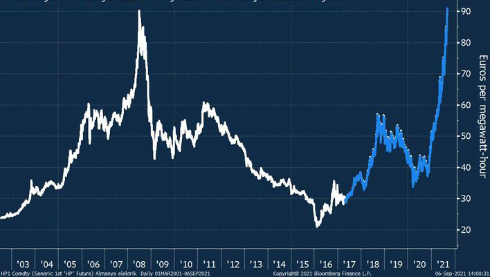 Avropa elektrik qiymətləri göstəricisi olan Almaniya-Avstriya elektrik qiymətləri, təbii qaz və karbon emissiyası icazələrindəki qiymət artımından sonra maliyyə böhran zamanında çatdığı səviyyəni də aşaraq yeni bir rekord qırıb (xəbərin sonundakı cədvəldən ətraflı tanış ola bilərsiniz). "Citigroup" Avropada elektrik enerjisi qiymətlərinin 20% ətrafında yüksələ biləcəyini nəzərdə tutur.
