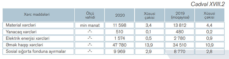 Şirkət üzrə qaz hasilatına çəkilən cəmi xərclərin tərkibində material xərclərinin xüsusi çəkisi 3,4%, əmək haqqı xərcləri 13,9%, sosial sığortaya ayırmalar 2,9%, amortizasiya ayırmaları 18,2%, təmir xərcləri 8,2%, texniki xidmət xərcləri 4,7%, nəqliyyat xərcləri 14,5%, mədən vergisi 17,7% və s. təşkil etmişdir. Şirkət üzrə 1000 m3 əmtəəlik qazın maya dəyəri 2019-cu illə müqayisədə 0,62 manat (1,0%) azalmışdır.