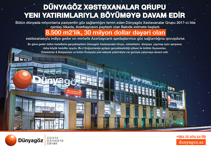 8500 kvadratmetrlik, 30 milyon dollar dəyəri olan xəstəxana!(®) Bütün dünyada milyonlarla pasiyentin göz sağlamlığını təmin edən Dünyagöz Xəstəxanalar Qrupu 2017-ci ildə qardaş ölkədə, Azərbaycanın paytaxtı olan Bakıda xidmətə başlayıb.