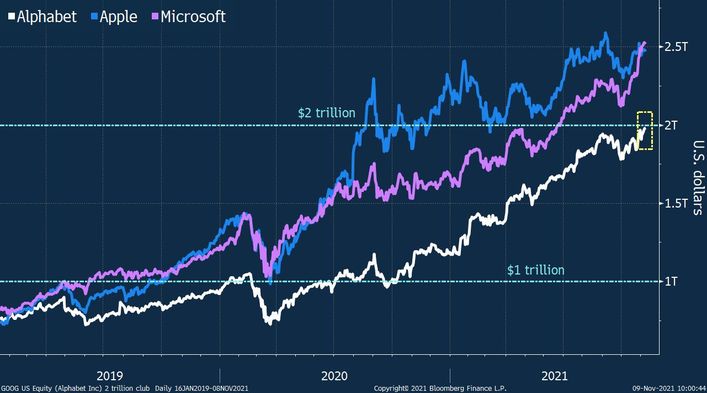 Google-ın sahibi olan Alphabet şirkəti, "elitarlar" klubu olaraq bilinən və bazar dəyəri 2 trilyon dolları keçən şirkətlərin arasına qatılıb.