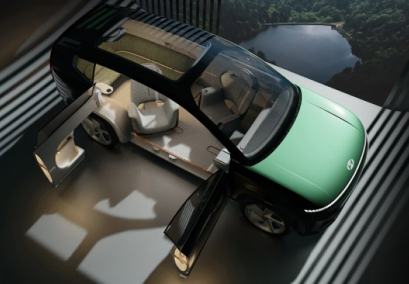 Elektromobilin konsept damı panoramik ekranla təchiz edilib ki, bu ekran nəinki sərnişinlərin şəxsi seçimlərinə uyğun olaraq müxtəlif məzmunları nümayiş etdirə, həm də salondakı ümumi atmosferi dəyişdirə və səyahət zamanı maksimum idarəetmə rahatlığına zəmanət verə bilər.