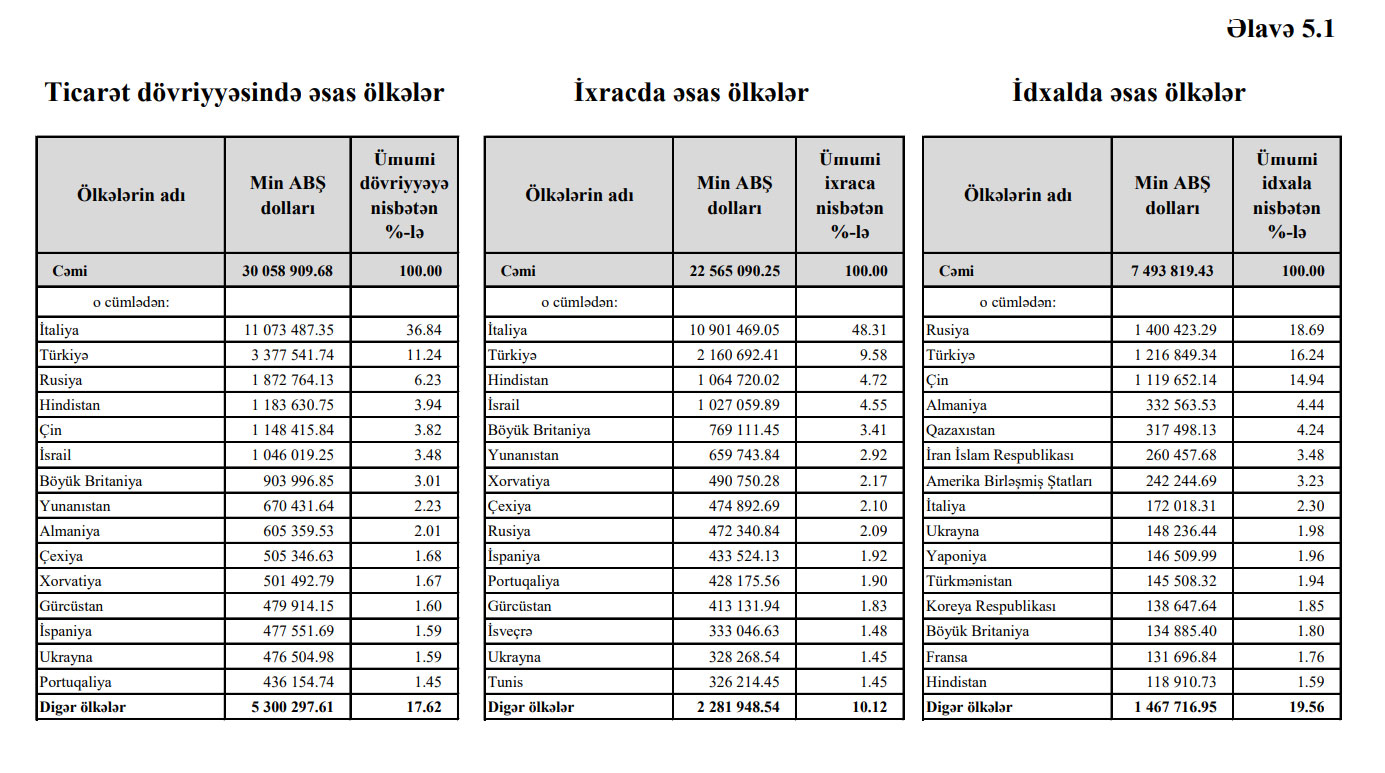 Azərbaycanın ən çox ixrac və idxal etdiyi mallar - YENİ SİYAHI