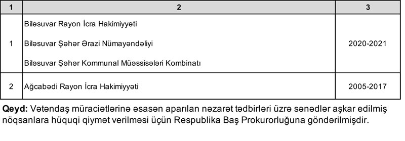 Bunlardan əlavə, Xidmət tərəfindən vətəndaş müraciətinə əsasən 4 təşkilatda müraciətdə göstərilənlər yoxlanılıb, cəmi 64,4 min manat məbləğində artıq və əsassız ödənişlərə yol verildiyi aşkar olunub və yoxlamalarla aşkar edilmiş nöqsanlara hüquqi qiymət verilməsi üçün yoxlamaların nəticələri üzrə tərtib edilmiş sənədlər Azərbaycan Respublikasının Baş Prokurorluğuna göndərilib (Əlavə №1).